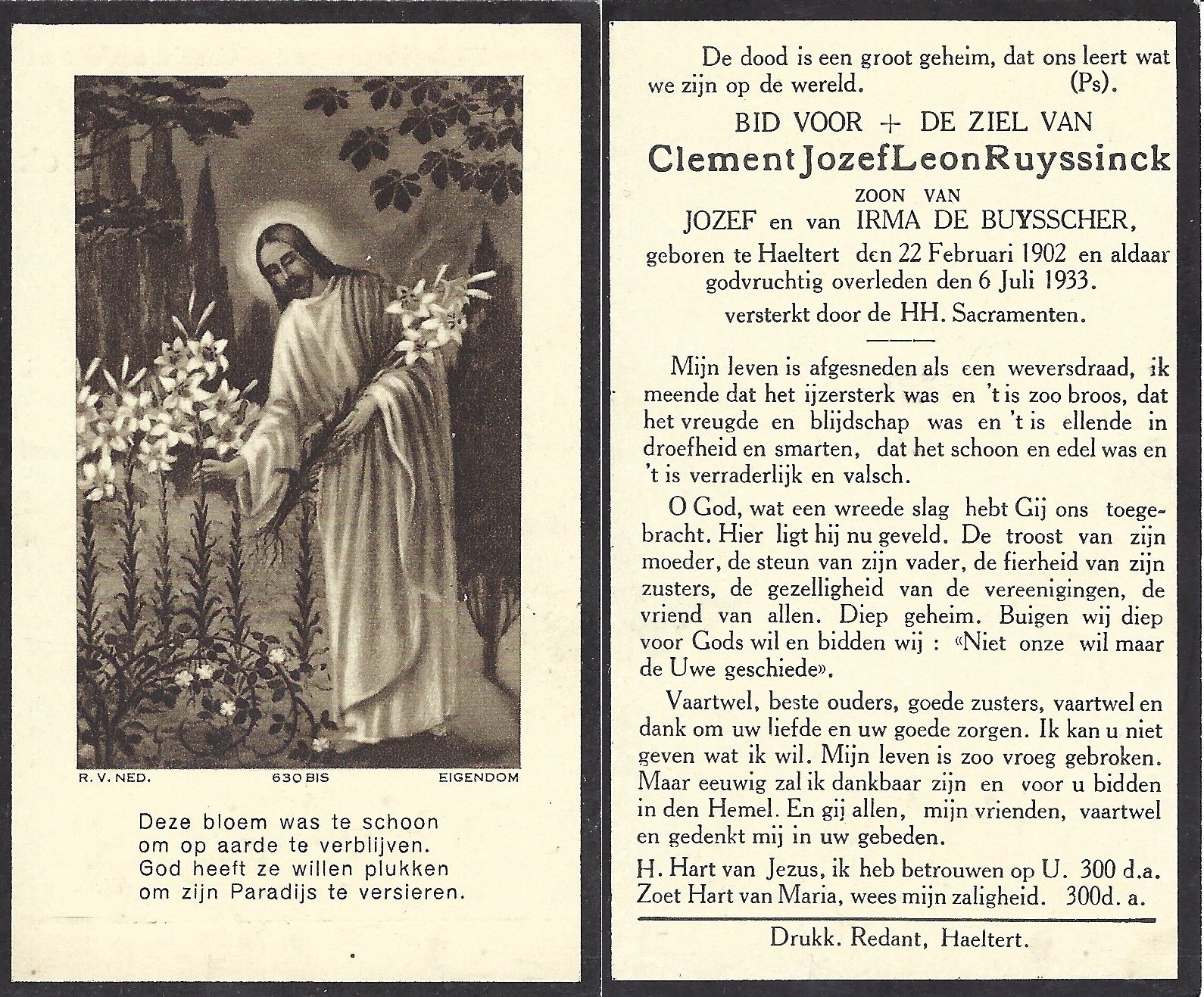 | Ruyssinck Clement Jozef Leon | | Haaltert | 22/02/1902 | Haaltert | 06/07/1933 |