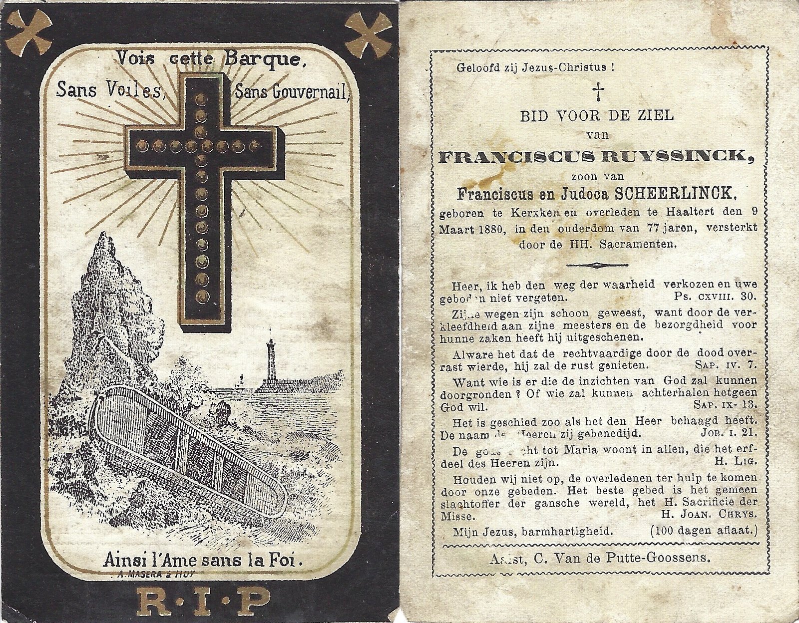 | Ruyssinck Franciscus | | Kerksken | 13/02/1803 | Haaltert | 09/03/1880 |