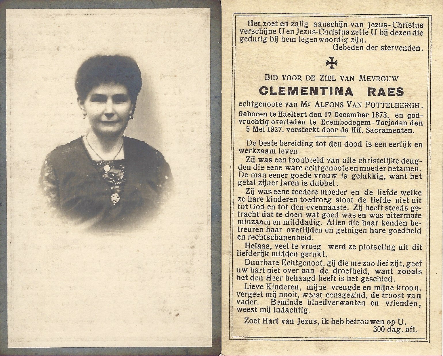 | Raes Clementina | Van Pottelbergh Alfons | Haaltert | 17/12/1873 | Terjoden | 05/05/1927 |