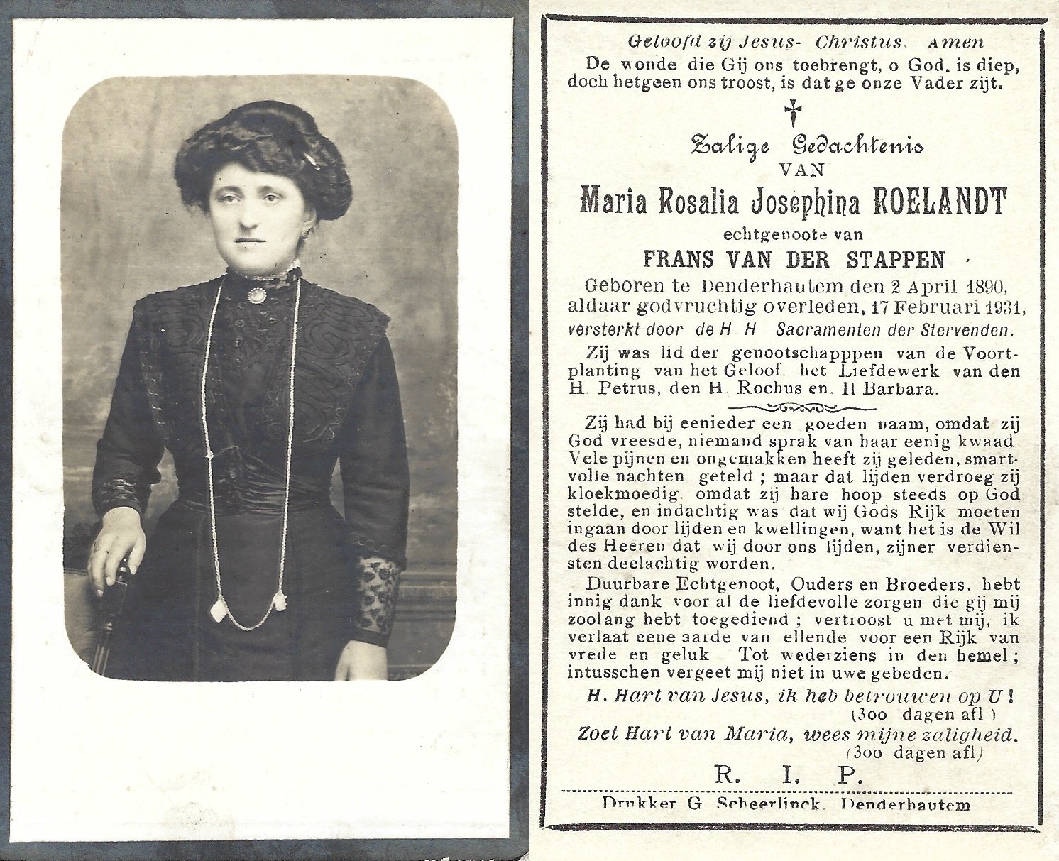 | Roelandt Maria Rosalia | Van Der Stappen Frans | Denderhoutem | 02/04/1890 | Denderhoutem | 17/02/1931 |