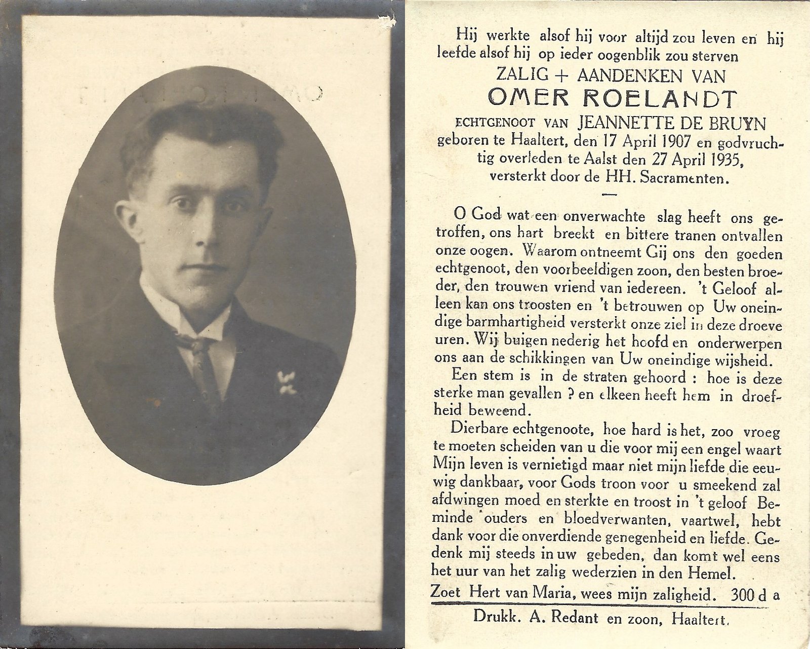 | Roelandt Omer | De Bruyn Jeannette | Haaltert | 17/04/1907 | Aalst | 27/04/1935 |