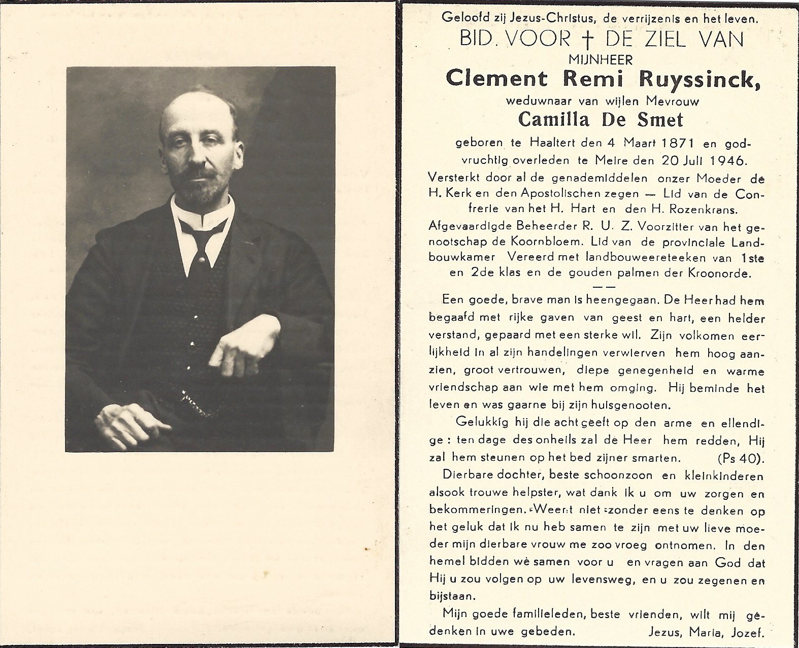 | Ruyssinck Clement Remi | De Smet Camilla | Haaltert | 04/03/1871 | Mere | 20/07/1946 |