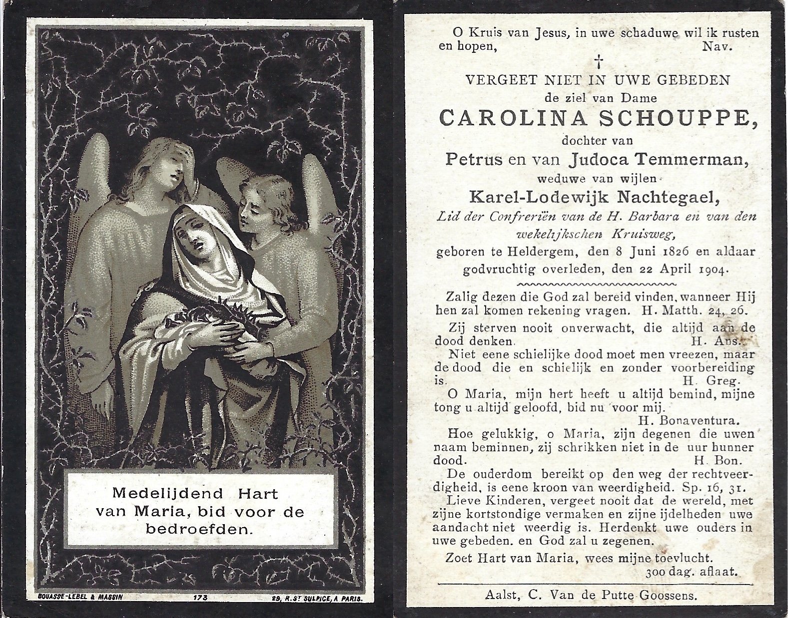 | Schouppe Carolina | Nachtegael Karel-Lodewijk | Heldergem | 08/06/1826 | Heldergem | 22/04/1904 |