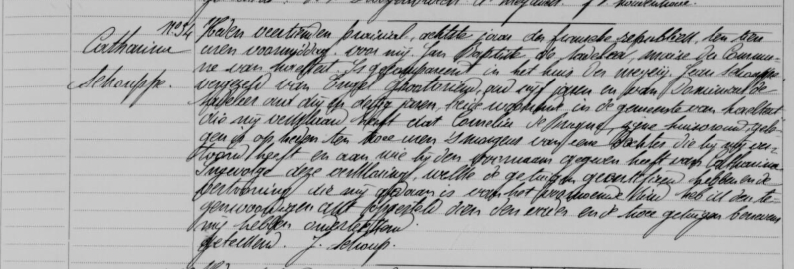 | Schouppe Maria Catharina | Perreman Constantinus en De Doncker Petrus Joannes | Haaltert | 03/06/1800 | Denderhoutem | 27/02/1893 |