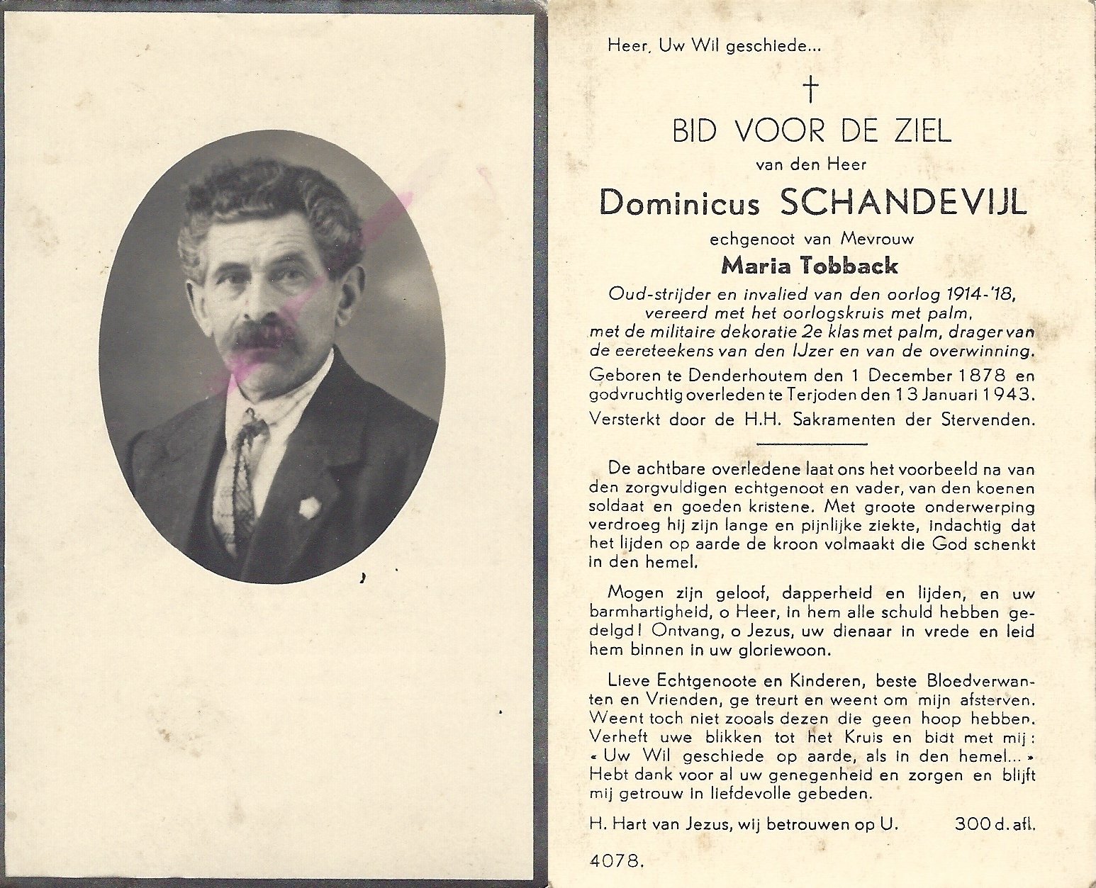 | Schandevijl Dominicus | Tobback Maria | Denderhoutem | 01/12/1878 | Terjoden | 13/01/1943 |