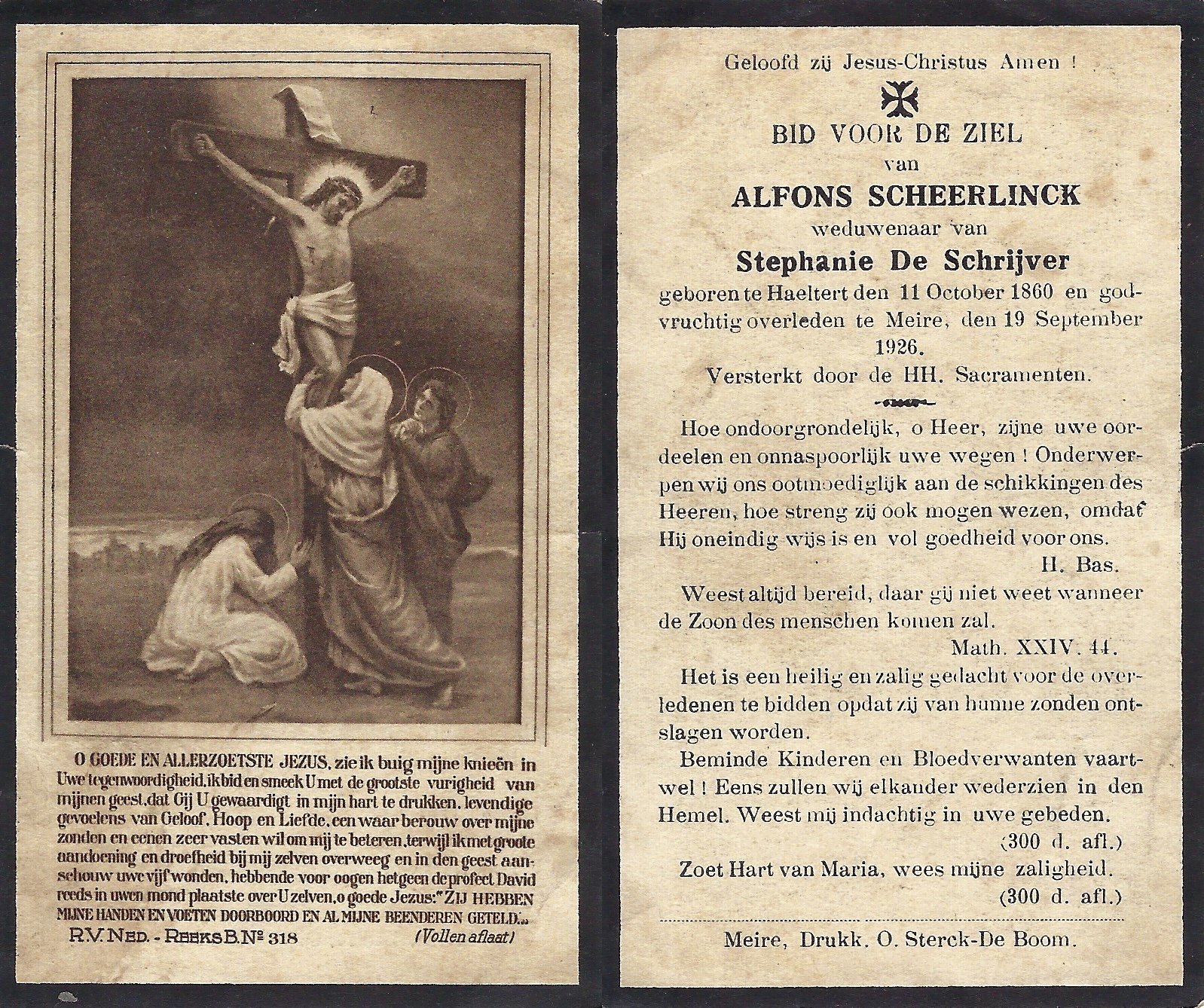 | Scheerlinck Alfons | De Schrijver Stephanie | Haaltert | 11/10/1860 | Mere | 19/09/1926 |