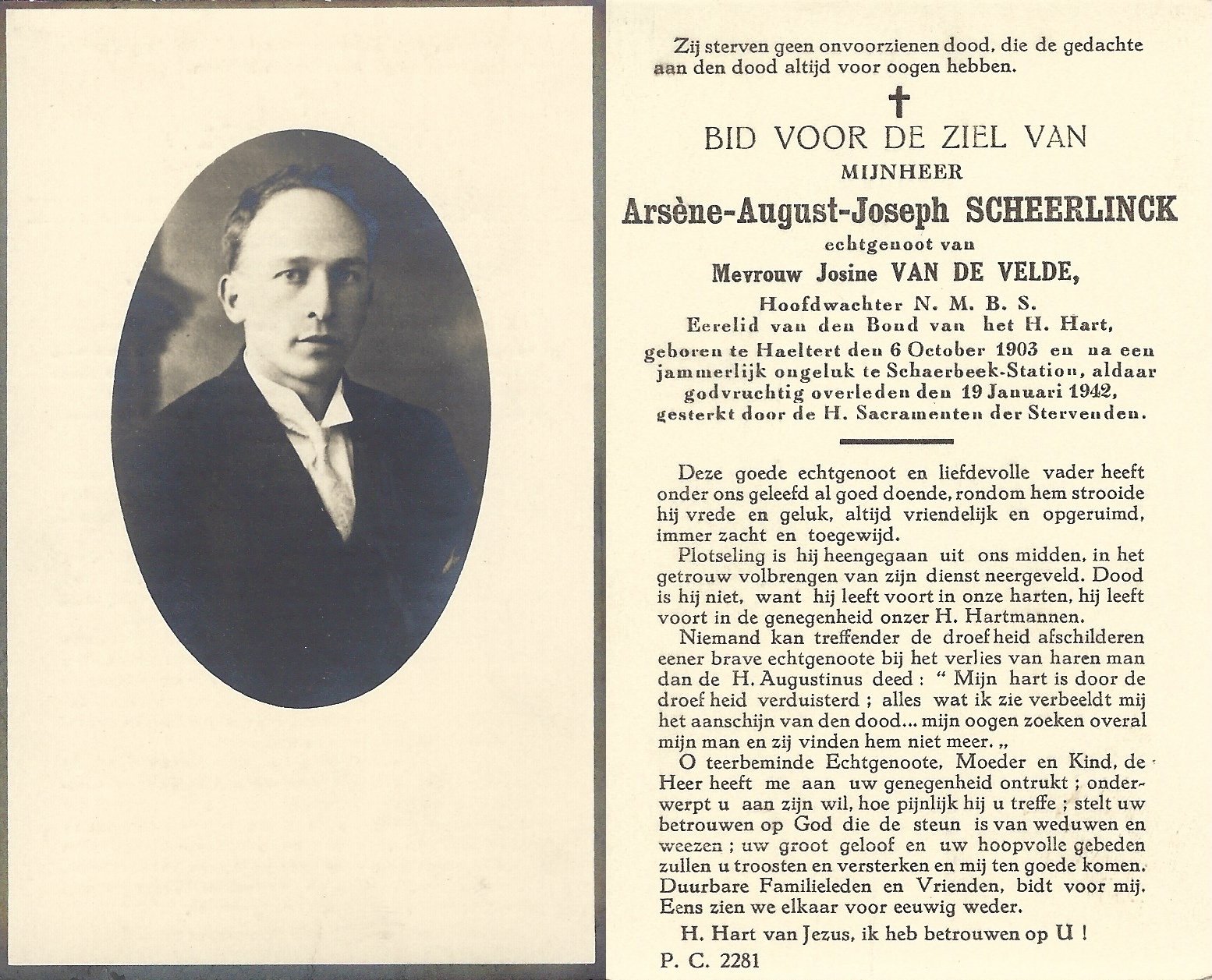 | Scheerlinck Arsène August Joseph | Van De Velde Josine | Haaltert | 06/10/1903 | Schaarbeek | 19/01/1942 |
