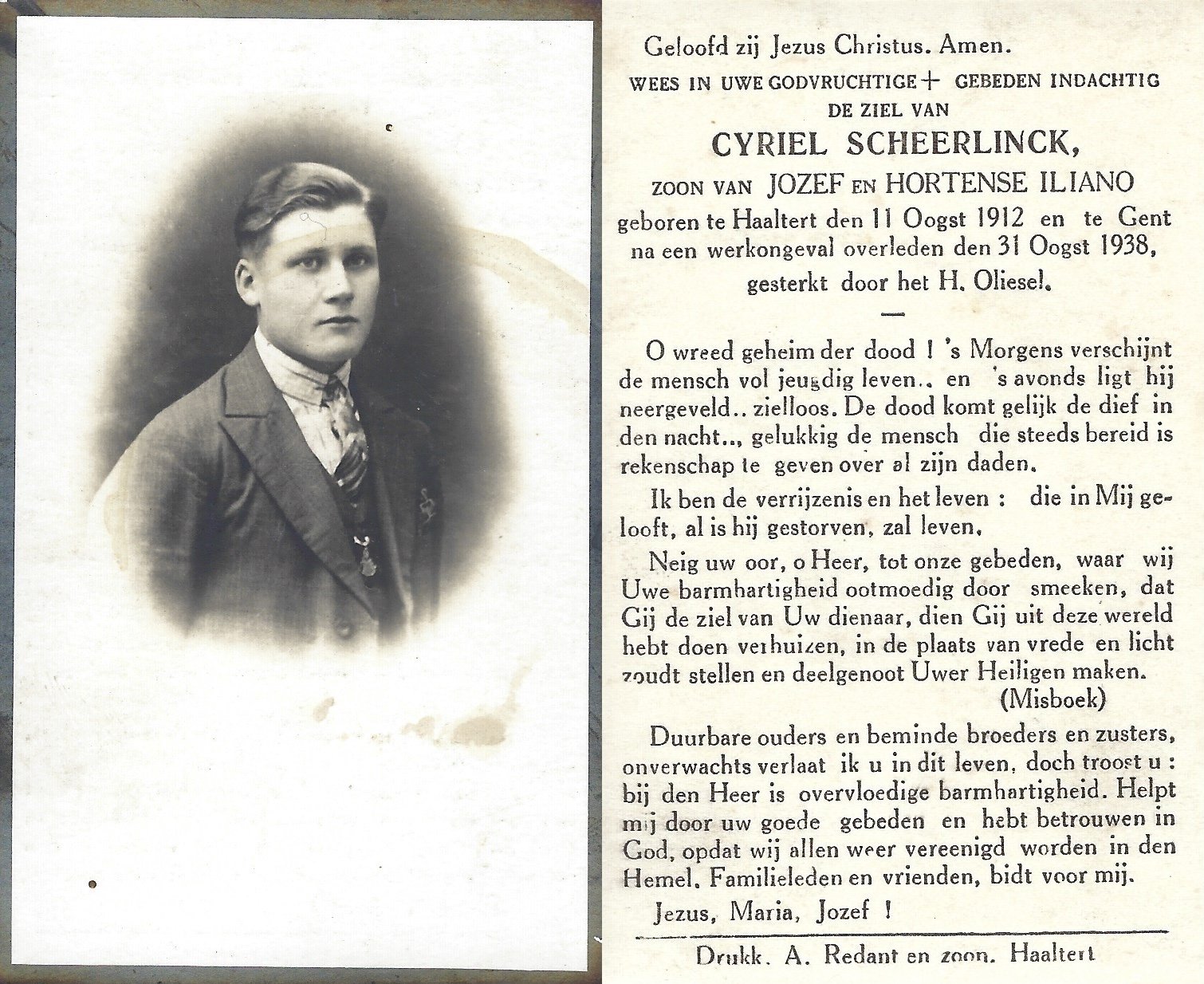 | Scheerlinck Cyriel | Haaltert | 11/08/1912 | Gent | 31/08/1938 | |