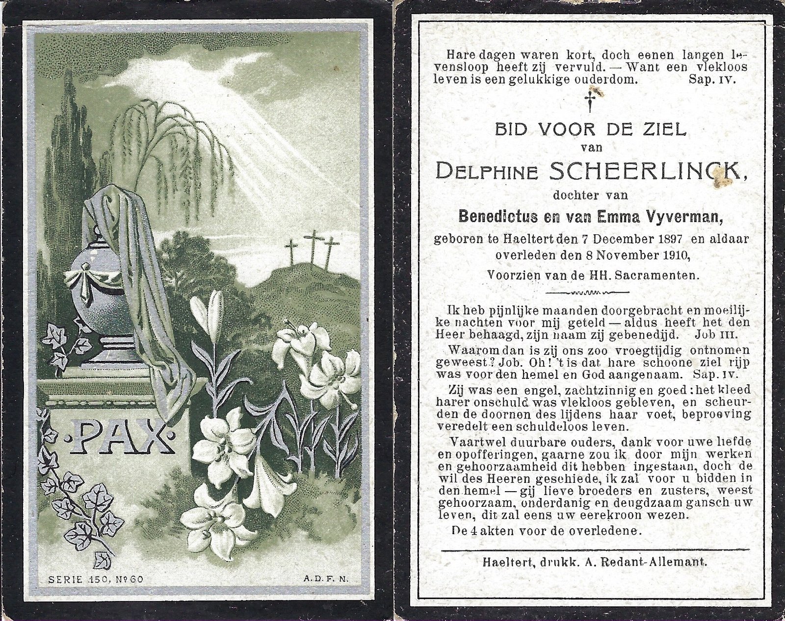 | Scheerlinck Delphine | Haaltert | 07/12/1897 | Haaltert | 08/11/1910 | |