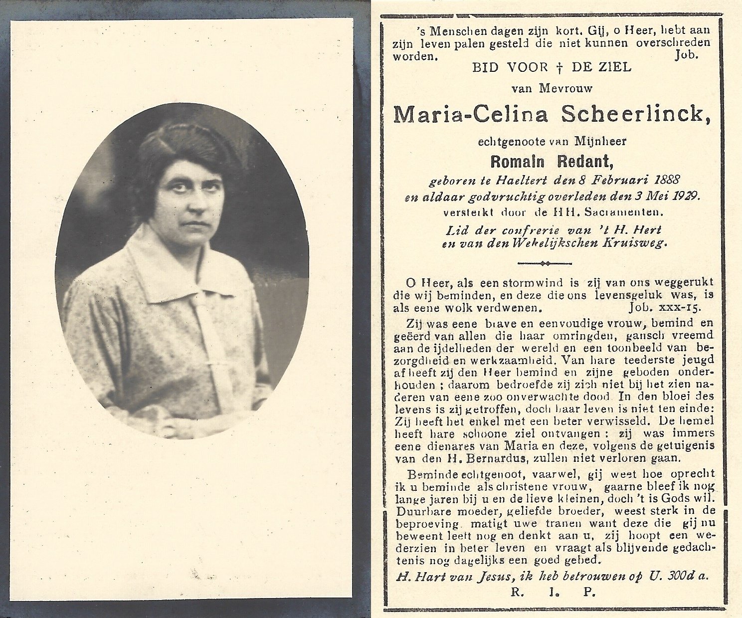 | Scheerlinck Maria-Celina | Redant Romain | Haaltert | 08/02/1888 | Haaltert | 03/05/1929 |