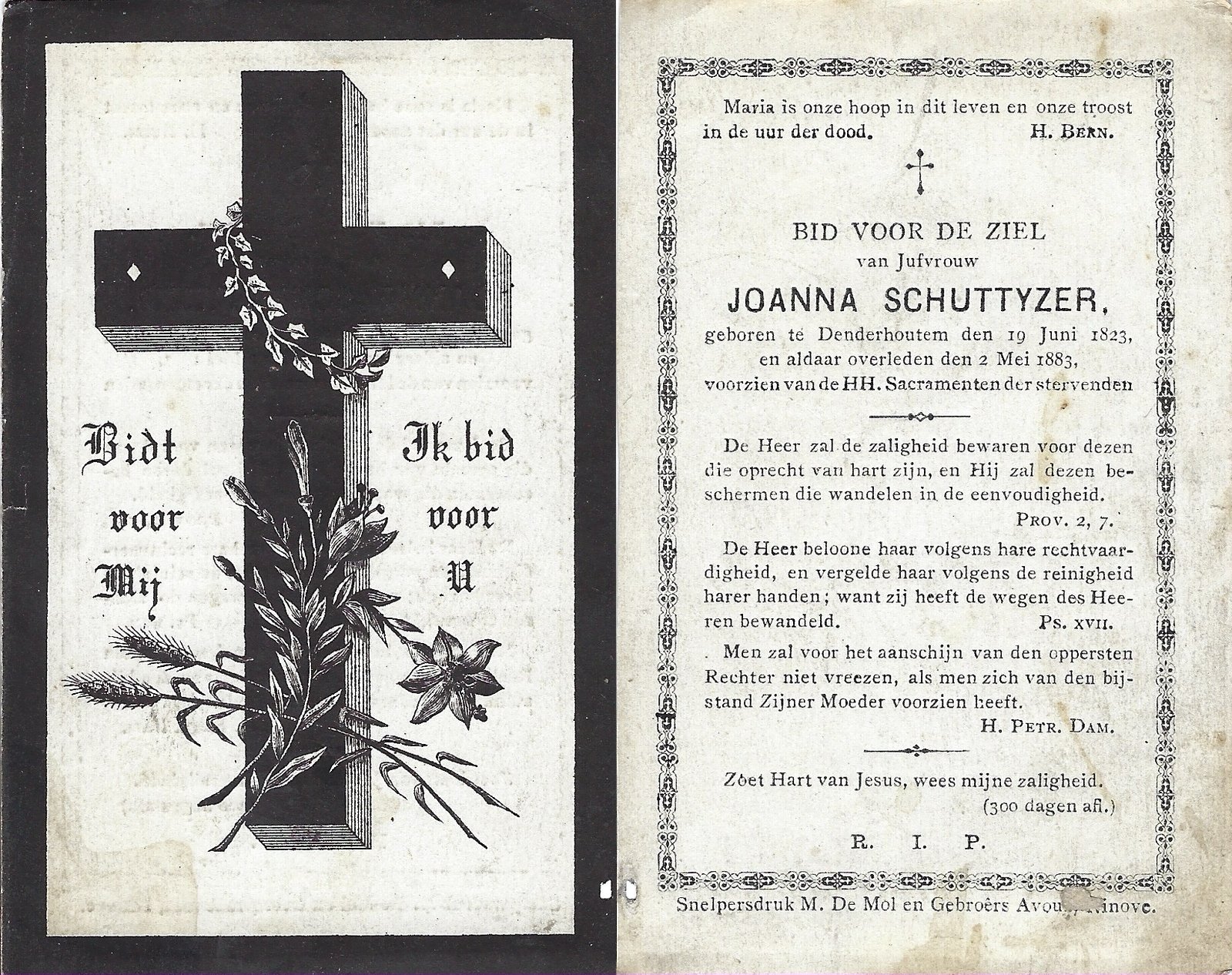 | Schuttyzer Joanna | Denderhoutem | 19/06/1823 | Denderhoutem | 02/05/1883 | |