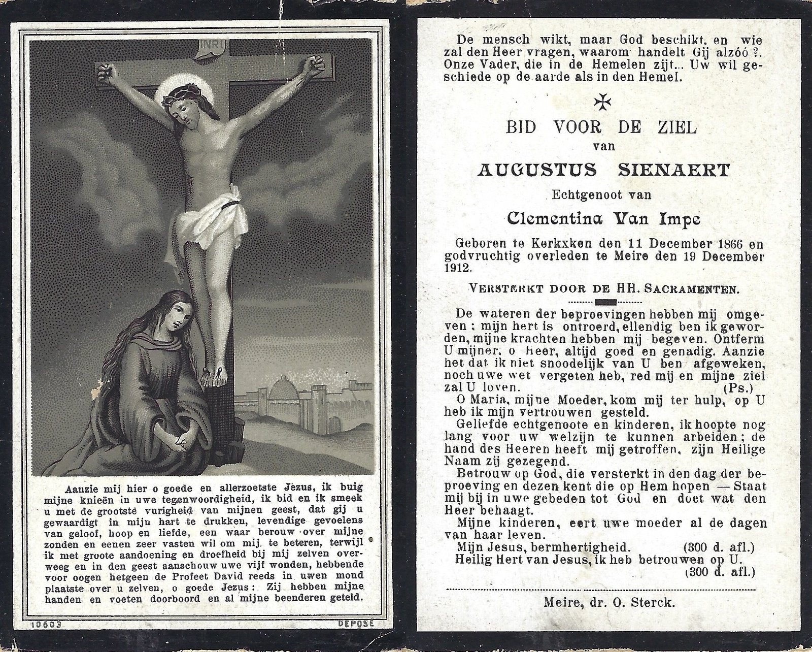 | Sienaert Augustus | Van Impe Clementina | Kerksken | 11/12/1866 | Mere | 19/12/1912 |