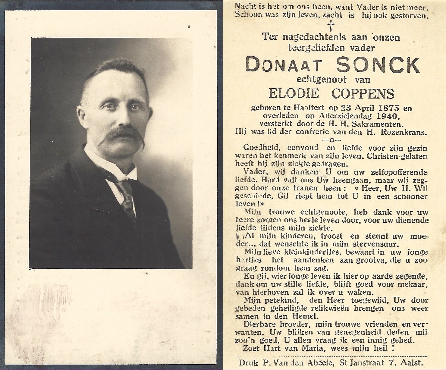 | Sonck Donaat | Coppens Elodie | Haaltert | 23/04/1875 | Haaltert | 02/11/1940 |