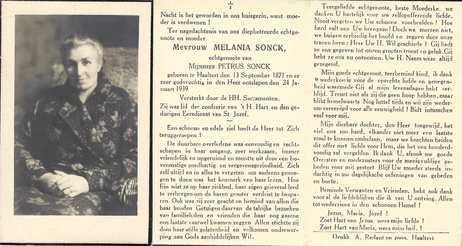 | Sonck Melania | Sonck Petrus | Haaltert | 13/09/1871 | Haaltert | 24/01/1939 |