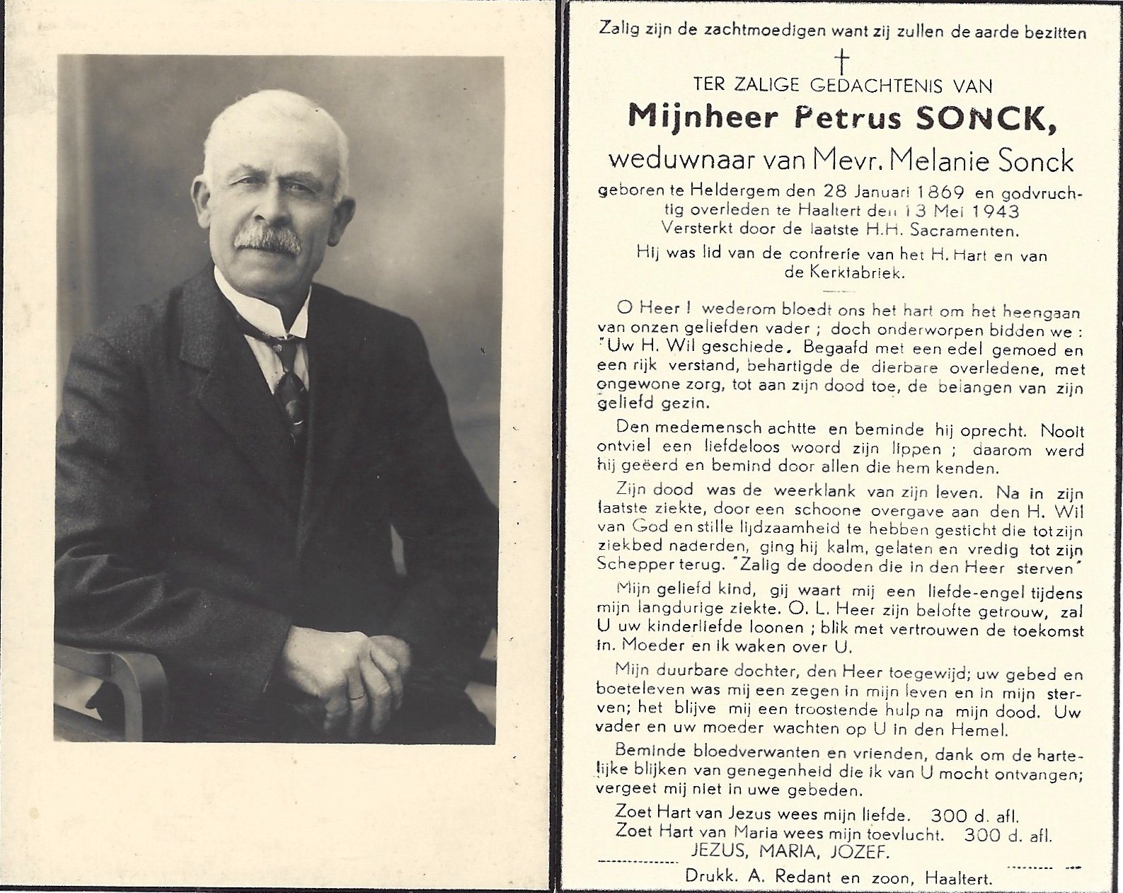 | Sonck Petrus | Sonck Melanie | Heldergem | 28/01/1869 | Haaltert | 13/05/1943 |
