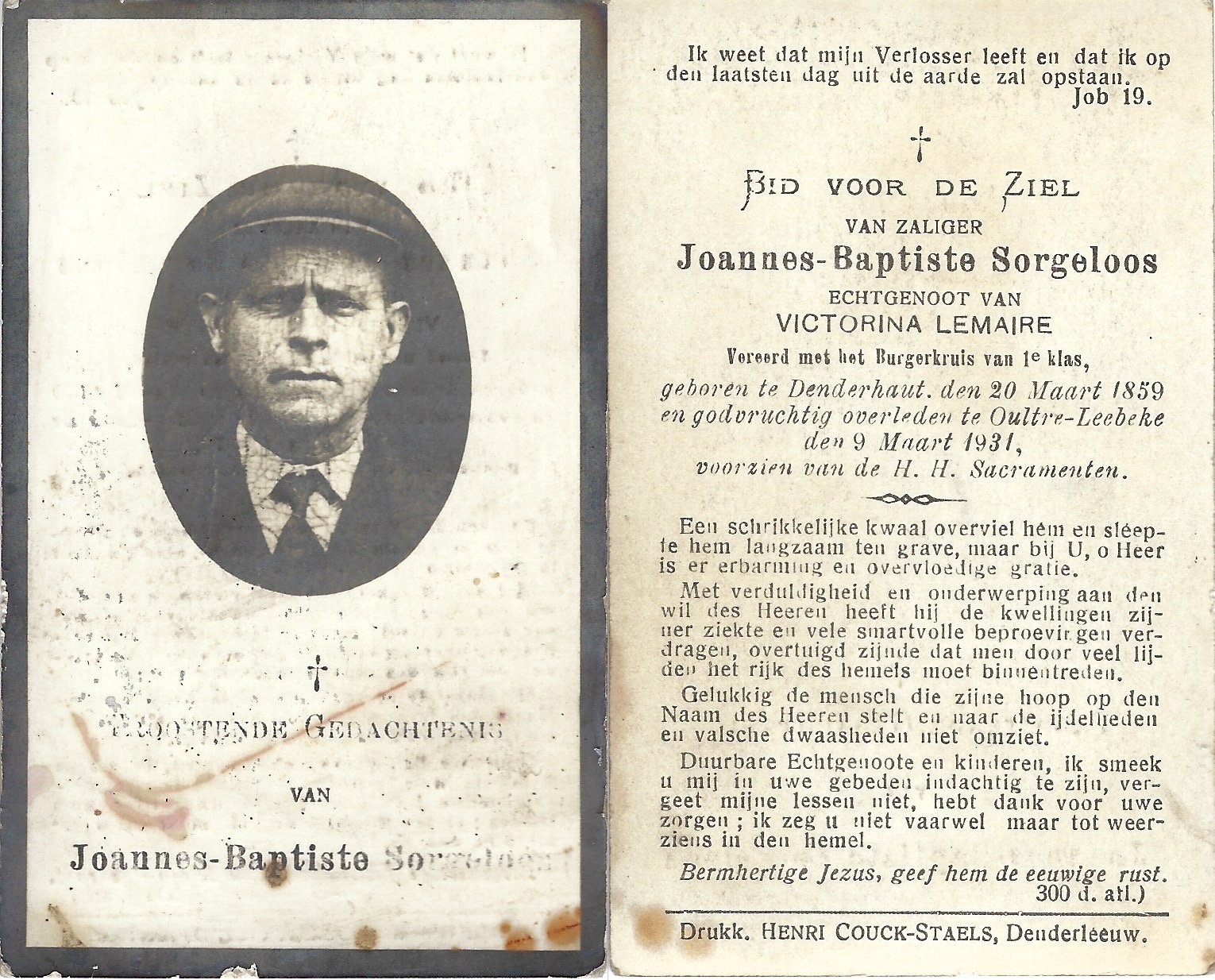| Sorgeloos Joannes Baptiste | Lemaire Victorine | Denderhoutem | 20/03/1859 | Outer | 09/03/1931 |