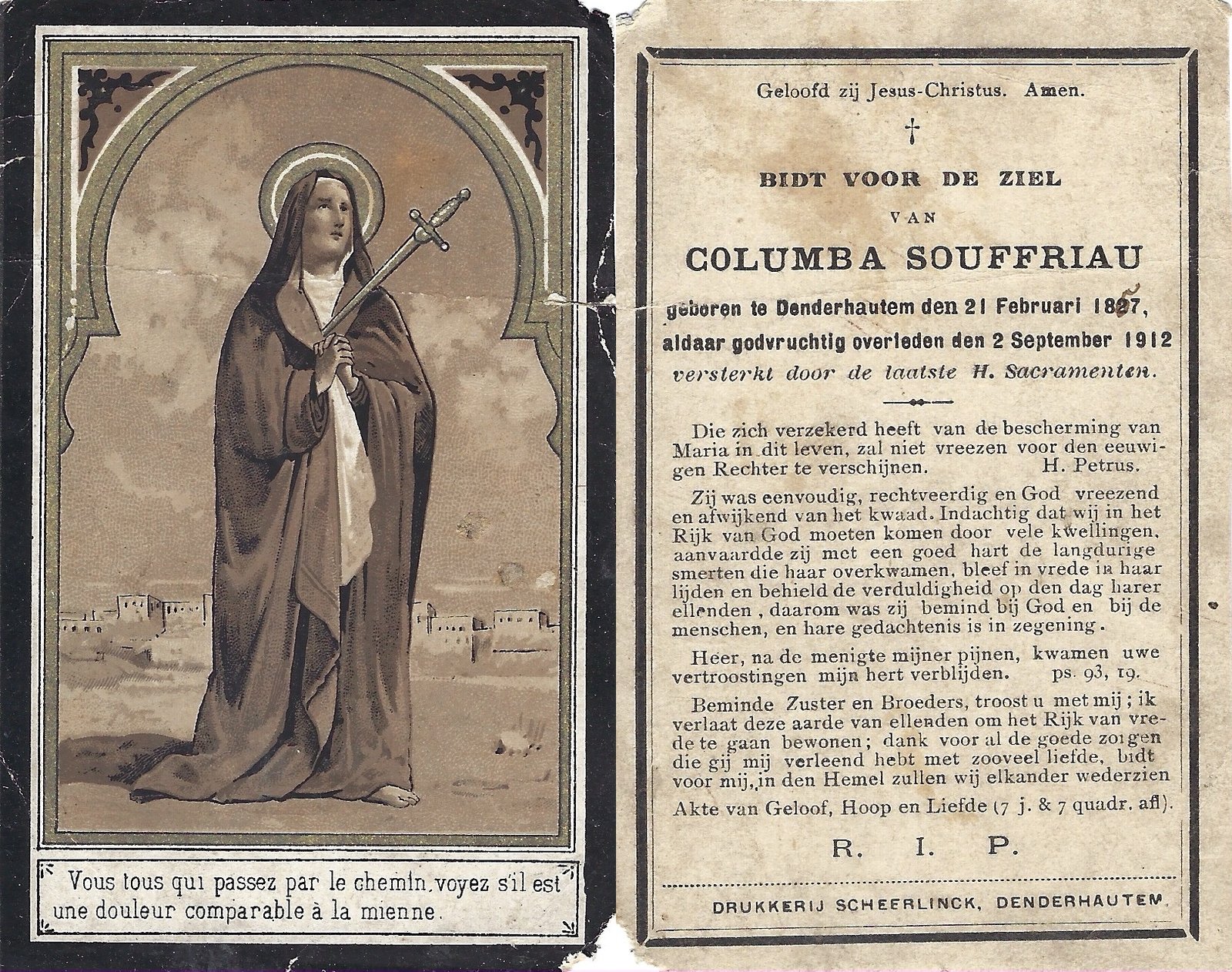 | Souffriau Columba | Denderhoutem | 21/02/1857 | Denderhoutem | 02/09/1912 | |