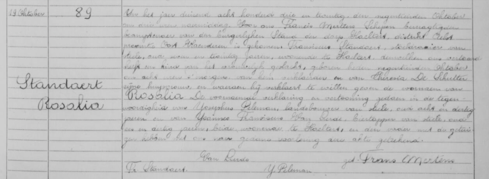 | Standaert Rosalia | Haaltert | 19/10/1823 | Haaltert | 16/03/1895 | |