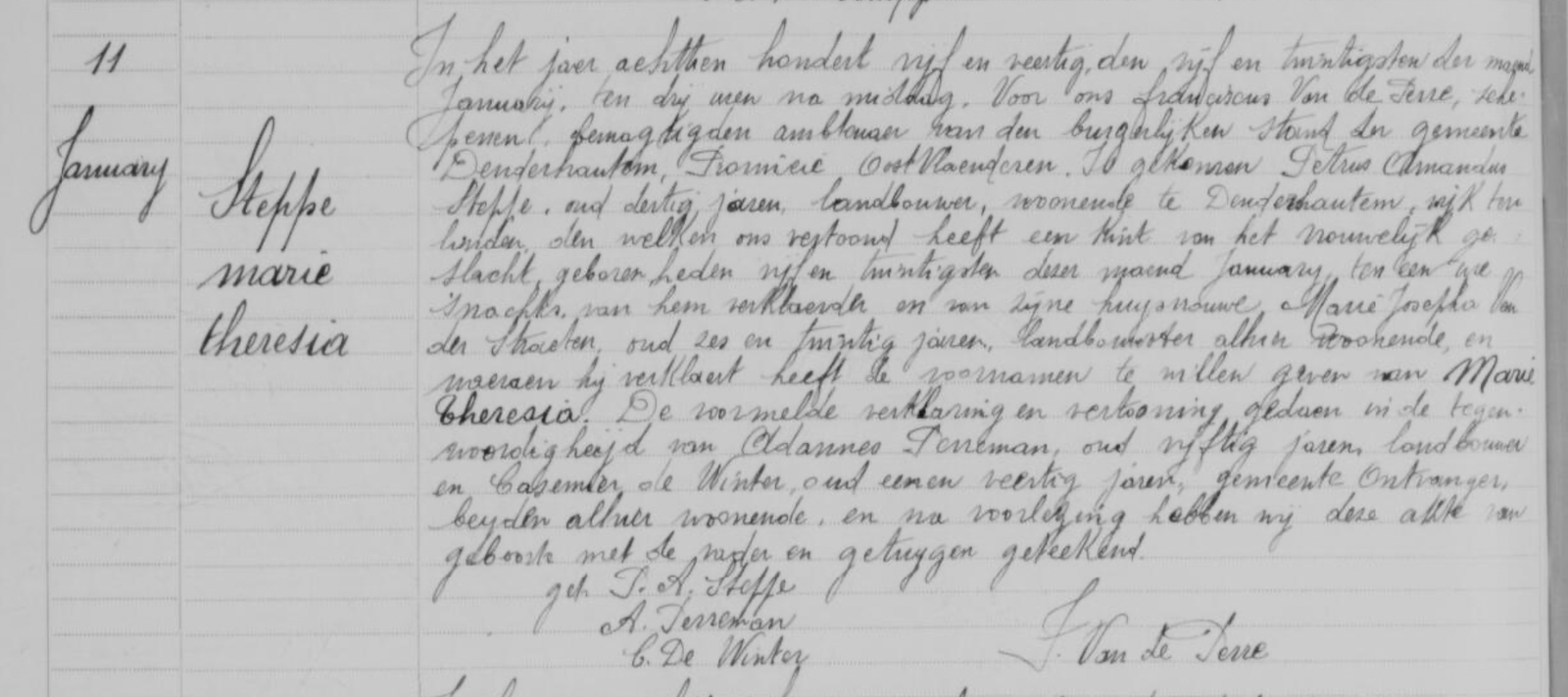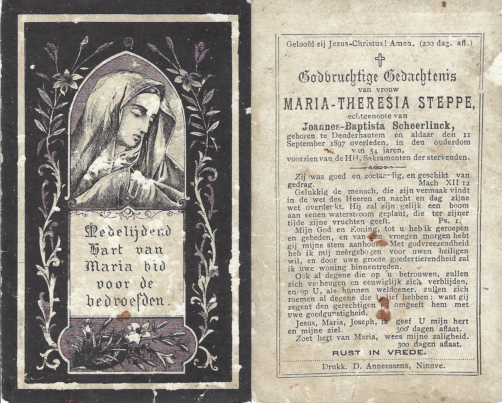 | Steppe Maria Theresia | Scheerlinck Joannes Baptista | Denderhoutem | 25/01/1845 | Denderhoutem | 11/09/1897 |