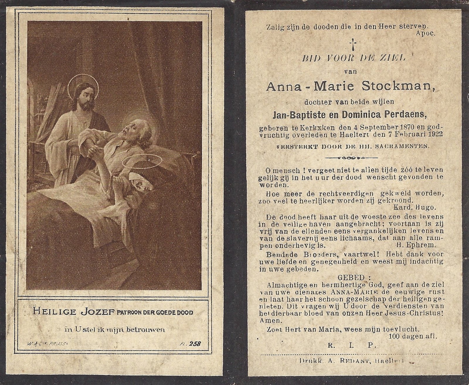 | Stockman Anna-Marie | Kerksken | 04/09/1870 | Haaltert | 07/02/1922 | |