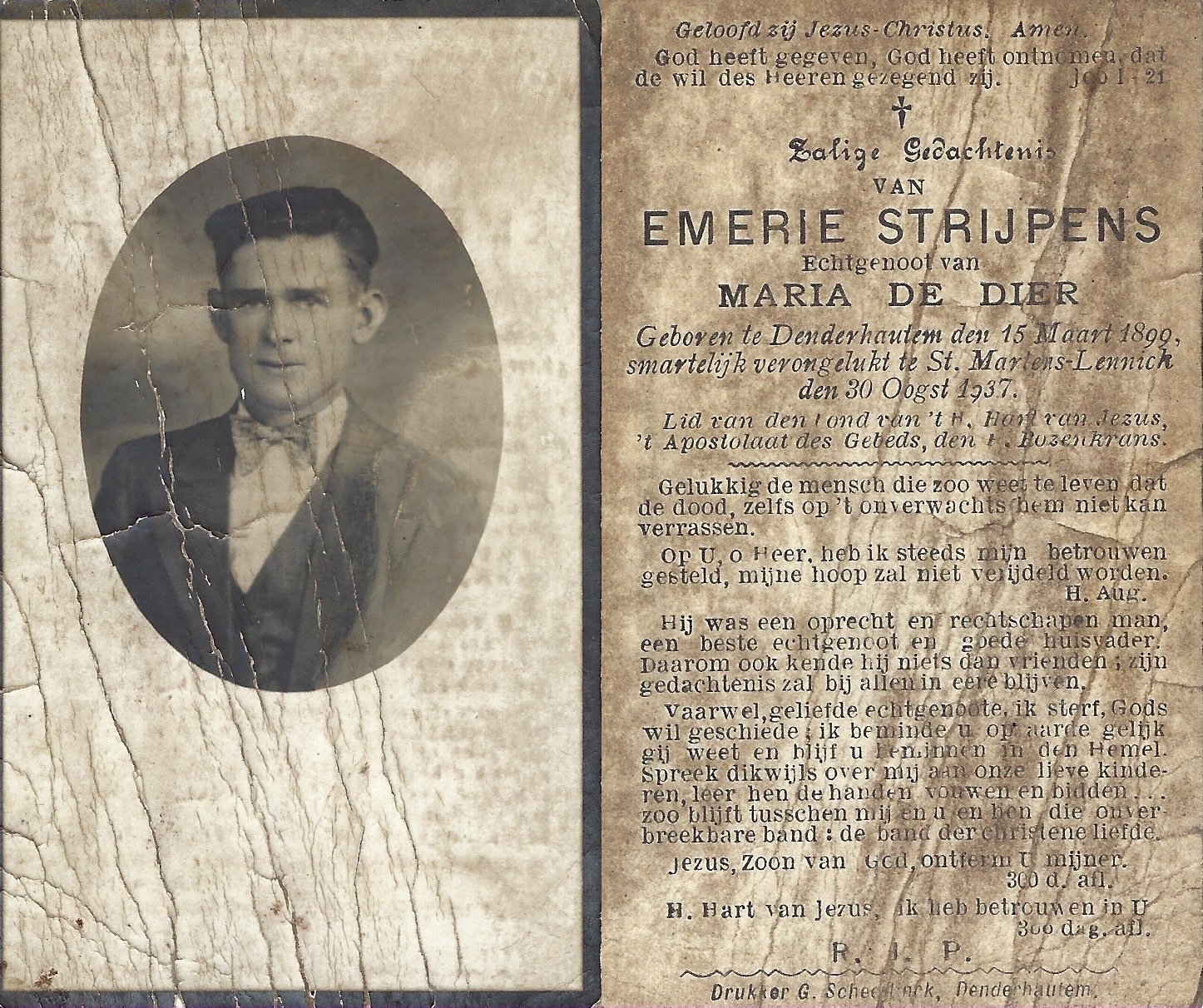 | Strijpens Emerie | De Dier Maria | Denderhoutem | 15/03/1899 | Sint-Martens-Lennik | 30/08/1937 |